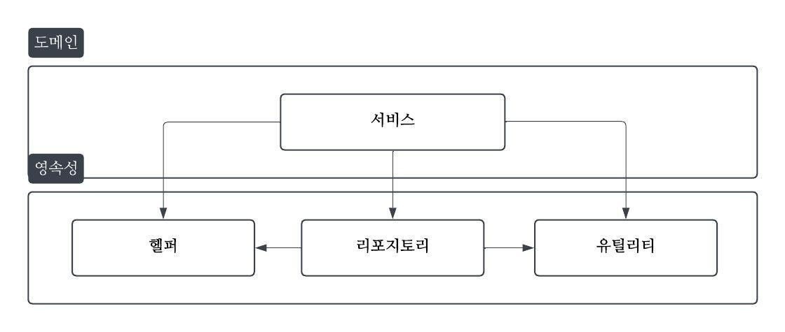 - 도메인 계층 : 필요한 비즈니스 로직을 수행하고, 도메인 엔티티의 현재 상태를 조회하거나 변경하기 위해 영속성 계층의 컴포넌트를 호출한다.